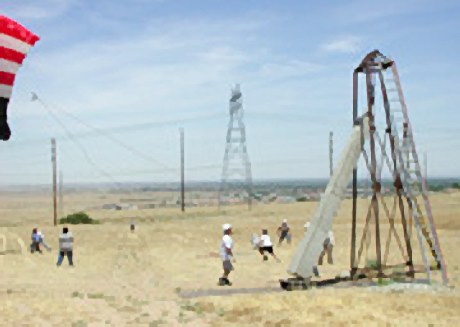 obelisk into vertical position in the desert near Palmdale by using only a kite, a pulley system, and a support