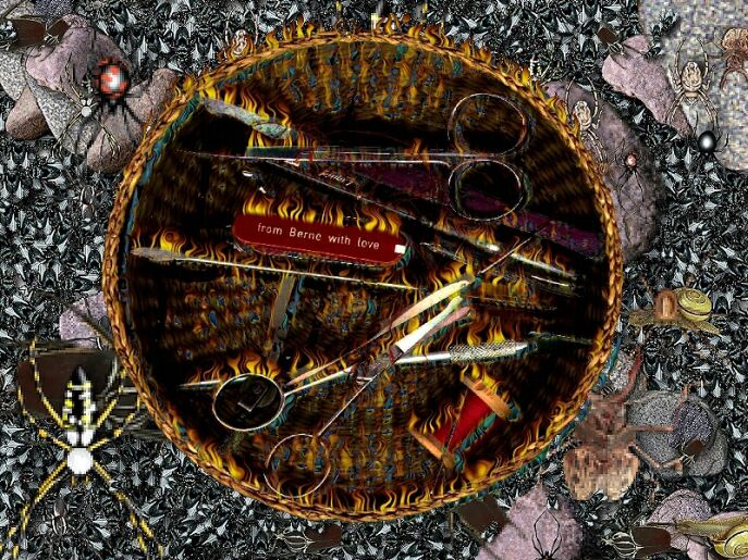 This work combines a central image from a flat bed Scanner photo and CGI with PSP .